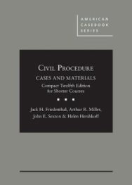 The Compact Twelfth Edition of this very popular casebook is designed for three- or four-credit civil procedure courses. It provides a framework for studying the essential and cutting-edge issues of civil procedure in an accessible but rigorous way. The materials are designed to reinforce doctrinal understanding, to foster case reading skills, to encourage critical thinking and an appreciation of the real-world context of procedural decisions, and to help develop a sense of litigation strategy.The casebook covers all of the major topics that a professor might wish to teach in a one-semester course of varied practical or theoretical emphases. A supplement provides important teaching material, including all updated Federal Rules, federal statutes and constitutional provisions pertinent to procedure, the pleadings in Twombly and Iqbal, state materials, a litigation flow-chart, and other important teaching tools.New materials include: notes on Supreme Court cases on general jurisdiction; materials on virtual contacts in personal jurisdiction; extensive materials the 2015 amendments to discovery practice, including e-discovery; the NFL concussion litigation; and, the emergence of multi-district litigation as a significant method of group litigation.