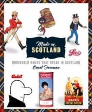 Of the wide range and diversity of British products that are now household names, both at home and abroad, the Scots can take pride in the fact that many of them began in Scotland. When people first spread Robertson’s Golden Shred Marmalade on their toast, it was by courtesy of Paisley man James Robertson. How would the housewife have thickened her sauce without cornflour, first produced in Paisley by Brown & Polson in 1854? The world’s first concentrated fruit drink was Rose’s Lime Juice cordial, invented by Leith man, Lachlan Rose; Pringle of Hawick gave the world the first knitted twin-set; J & P Coats of Paisley, whose origins go back to 1830, grew into the largest thread manufacturer in the world, and the UK’s number one comic, The Beano, was born in Dundee. Made in Scotland is a fascinating nostalgic journey into the past and a wonderful celebration of Scottish industry. It includes a huge number of black-and-white photographs of the old advertisements, slogans and trademarks of all the products featured: Askit * The Beano * British Caledonian Airways * Brown & Polson * Caithness Glass * Camp Coffee * Coats * Duncan’s Chocolates * Drambuie * Forbo-Nairn Linoleum * Gelnfiddich