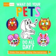 A humorous book for preschool children with 8 magic windows! The window mechanism slides across the vibrant animal artwork to reveal a funny situation they’re in.What Do Your Pets Do All Day? takes a funny look at what pets such as cats, dogs and hamsters might do while you’re out of the house.